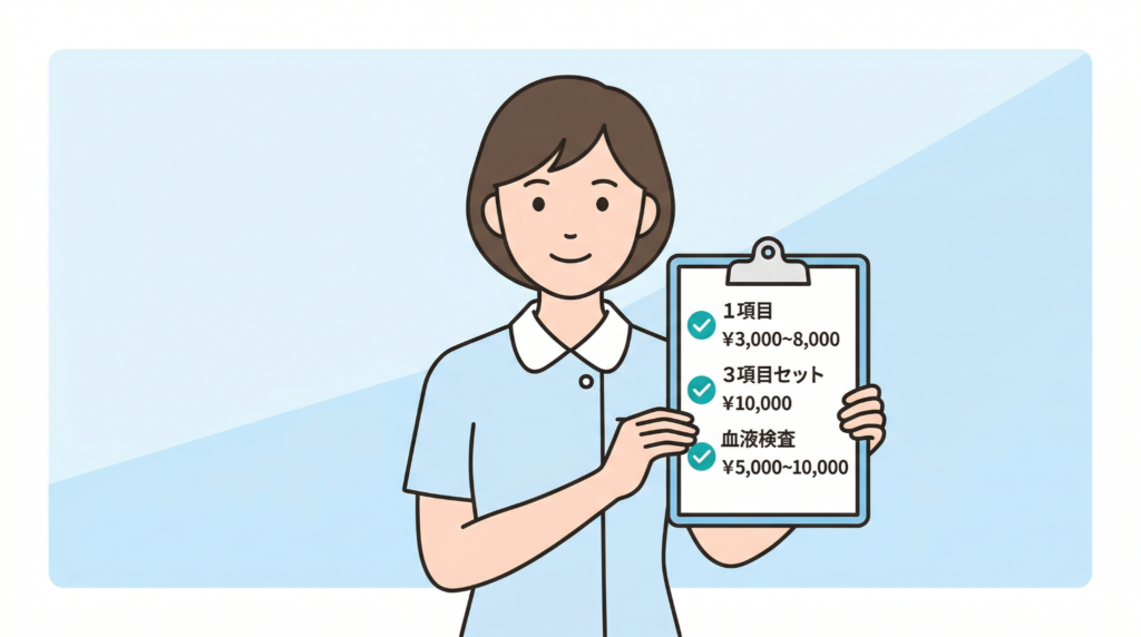 1項目あたり3,000円〜10,000円が目安で、3項目のセット検査なら10,000円前後が一般的です。